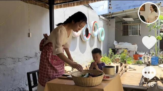 端午节,她衣着汉服,带着悦悦洗粽叶,包粽子;其后,她衣着白色精雅的连衣裙,带着奇奇去菜园摘菜,作念凉拌黄瓜吃。
