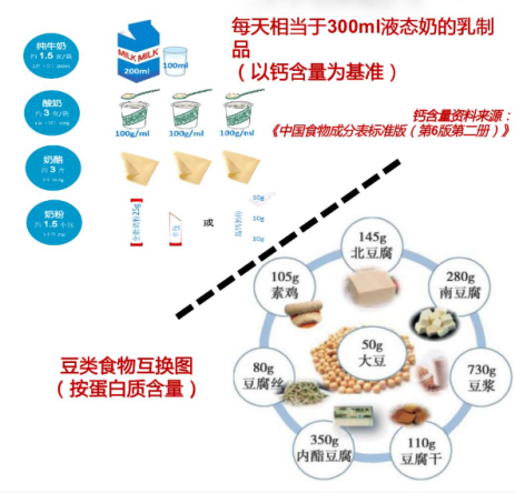 ● 奶成品和豆成品:让牛奶、酸奶、奶酪等奶成品和大豆过头成品成为膳食构成的必需品。