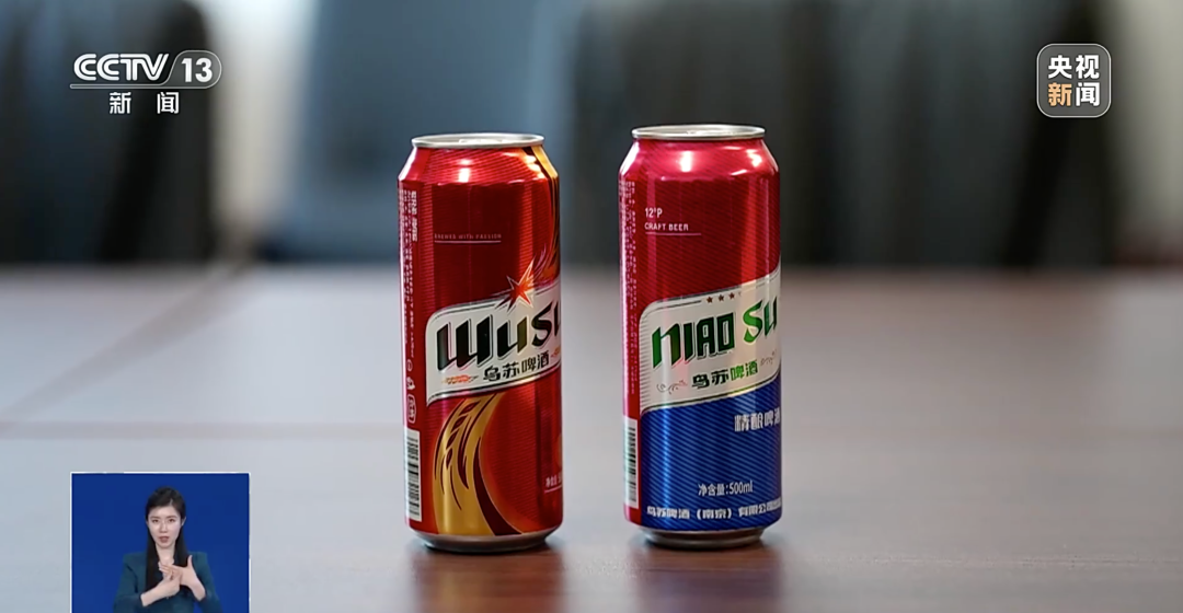 2020年,阛阓上出现与乌苏啤酒近似的红罐装500毫升啤酒,叫“鸟苏”。“鸟苏”啤酒的“鸟”字,“点”笔划用减弱的“闪电”图标代替,与乌苏啤酒华文商标唯有一“点”之差。