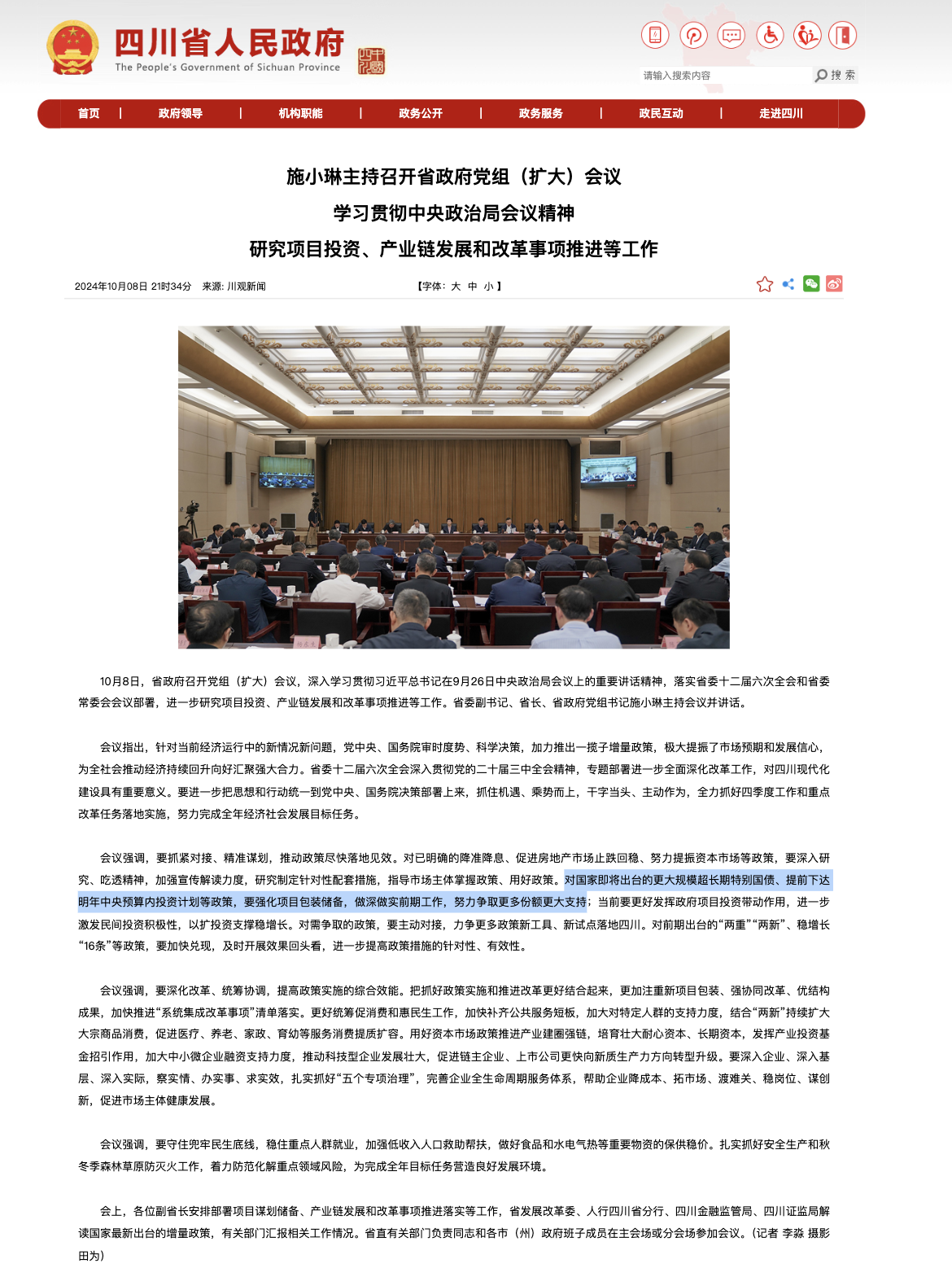 证券时报网讯,据四川省东说念主民政府网站音信,10月8日,四川省政府召开党组(扩大)会议,进一步盘考花式投资、产业链发展和改良事项鼓舞等责任。